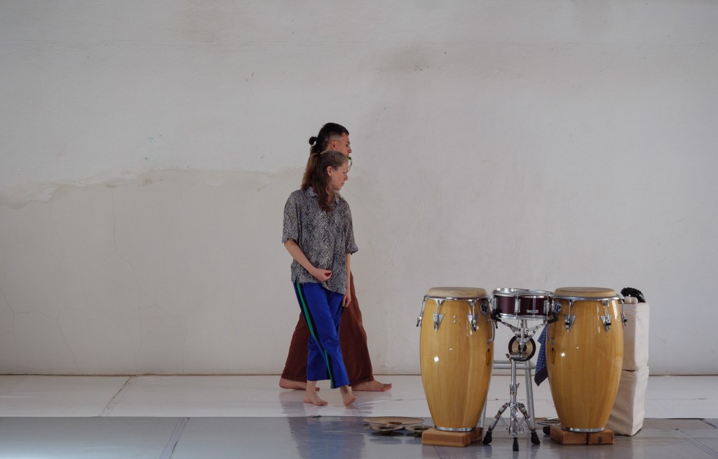 Zaman, in Turkish Temps, is a duet of dance and percussion. Movement and sound are composed instantaneously.